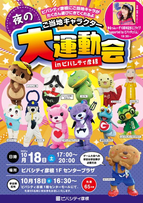 ビバシティ彦根にご当地キャラがたくさん遊びにきてくれるよ!